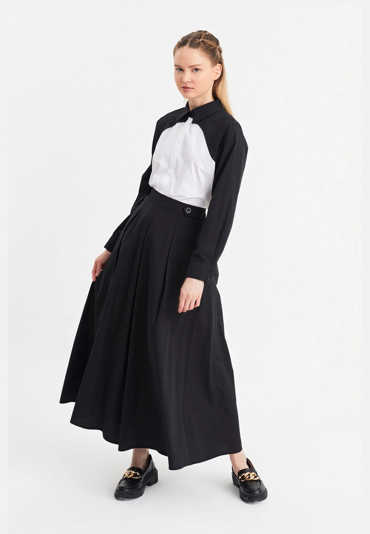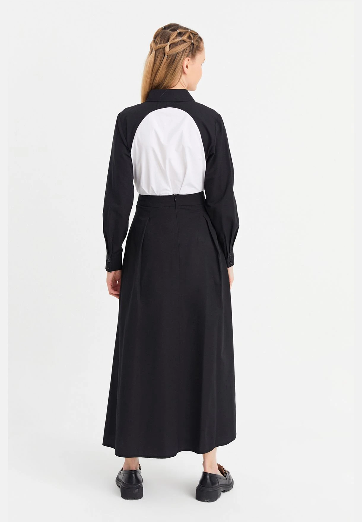 – Maxi length, flared hem style