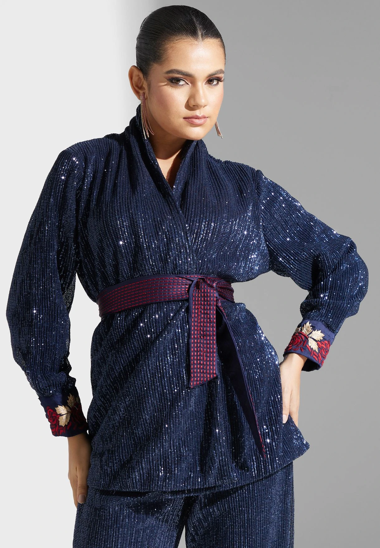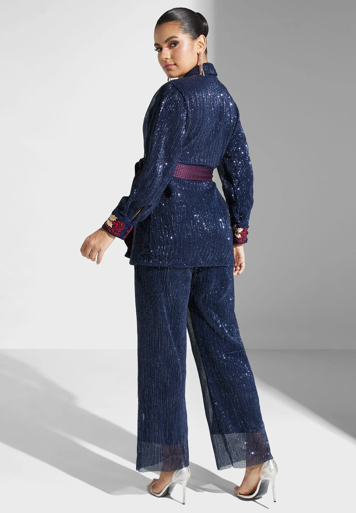 Feminine and glamorous, this set makes an alluring addition to your evening collection.