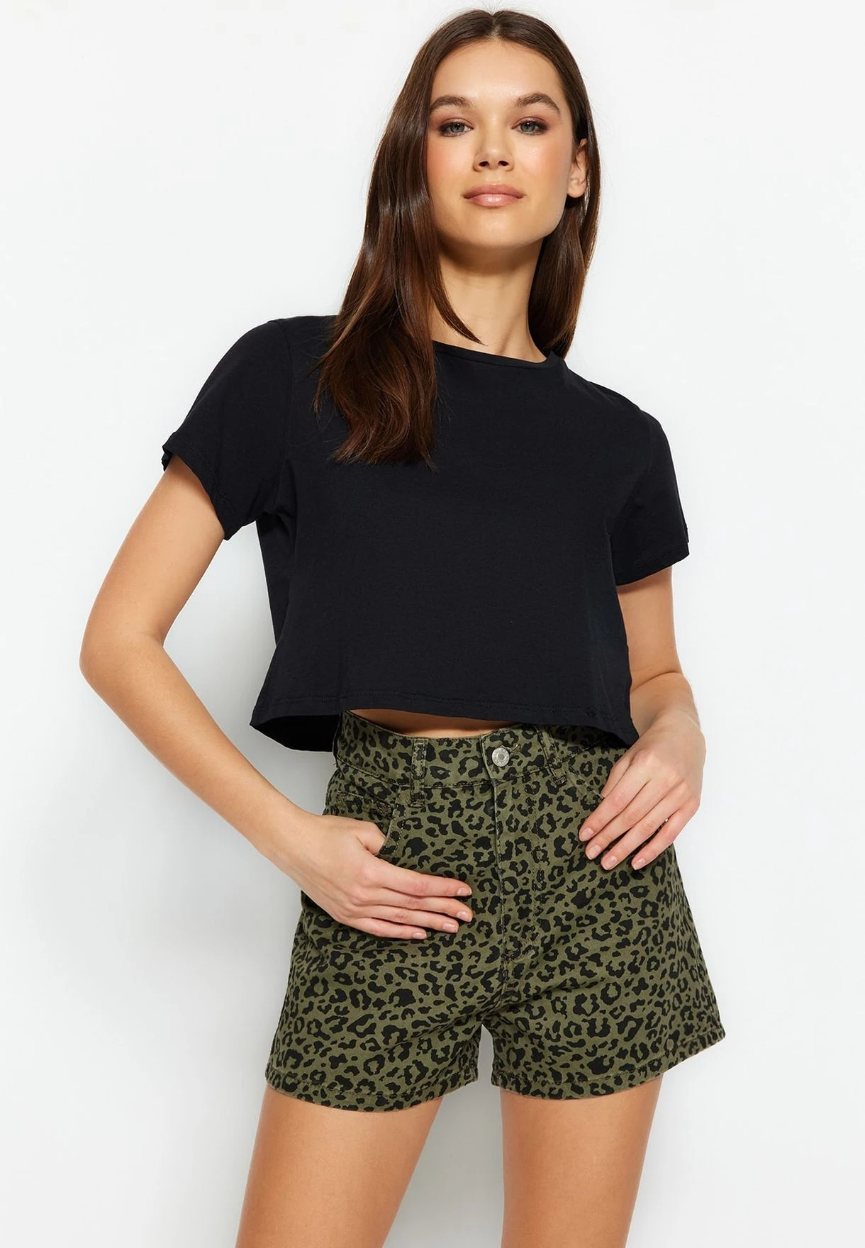 Trendyol Printed Denim Shorts